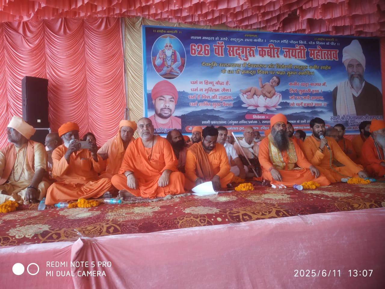 हरिद्वार( वरिष्ठ पत्रकार ठाकुर मनोजानंद) भूपतवाला स्थित श्री भगवान धाम कबीर आश्रम धर्मशाला ट्रस्ट में सतगुरु देव कबीर साहेब का 626 वां प्रकटोत्सव बड़े ही धूमधाम हर्षोल्लास के साथ एक विशाल संत समागम के रूप में मनाया गया इस अवसर पर एक विशाल शोभा यात्रा भी निकली गई कार्यक्रम में हजारों भक्तजन तथा भारी संख्या में संत महापुरुष उपस्थित थे इस अवसर पर बोलते हुए महामंडलेश्वर स्वामी ललितानन्द महाराज ने कहा मनुष्य जीवन में सेवा सत्संग और सिमरन होना नितांत आवश्यक है सत्संग के बिना मनुष्य के विवेक की वृद्धि होना संभव नहीं इस अवसर पर बोलते हुए स्वामी डॉ चंद्रभूषण मिश्रा ने कहा कबीर जी की उल्टी वाणी बरसे कमल भीगी पानी कबीर जी कहते हैं थोड़ा मन को निर्मल कर लो भजन की जरूरत ही नहीं मन मेरा निर्मल हुआ ठीक है जल और नीर पीछे-पीछे फिरे हरि कहे कहां कबीर कबीर जी की गहराइयों बहुत मुश्किल से बड़े ही विद्वान लोग समझ पाते हैं ढाई अक्षर प्रेम का पढ़े तो पंडित होय कबीर जी की क्रांति केवल साहित्य की क्रांति नहीं बल्कि जीवन की और ईश्वर भक्ति की क्रांति है जो समझ गया वह भवसागर पार हो गया इस अवसर पर बोलते हुए आश्रम के संयुक्त सचिव प्रबंधक स्वामी प्रकाशानन्द महाराज ने कहा 84 लाख योनियों को पार करने पर यह मानव शरीर प्राप्त होता है इसे कबीर जी के बताये मार्ग पर चलने से ही सार्थक किया जा सकता है और परम पूज्य स्वामी श्री जित्वानन्द जी महाराज इस पृथ्वी लोक पर साक्षात ईश्वर की प्रतिमूर्ति है ज्ञान का एक विशाल सूर्य है उनके पावन सानिध्य में हमारा जीवन सार्थकता की ओर बढ़ रहा है।