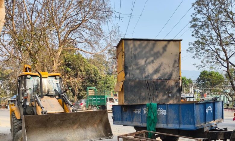 ऋषिकेश। शहर को अतिक्रमण मुक्त बनाने की दिशा में आगे बढ़ते हुए नगर आयुक्त के आदेशानुसार तिलक रोड, हरिद्वार रोड, वीरभद्र रोड ,एम्स रोड और शिवाजी नगर में नगर निगम टीम द्वारा अतिक्रमण हटाने का अभियान चलाया गया। इस अभियान के दौरान अजब 2 फूड वैन, 2 फूड कार्ट, 1काउंटर, 4 ठेली आदि को जप्त किया गया साथ ही फूड वैन को जपत करके नगर आयुक्त महोदय द्वारा आरटीओ की टीम को नगर निगम में बुलाकर उन 2 फूड वैन को आरटीओ कार्यालय भिजवाया गया साथ ही विभागीय कार्रवाई करते हुए अतिक्रमणकारियों को सख्त चेतावनी दी गई ।