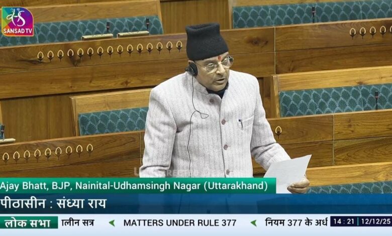 नई दिल्ली/देहरादून। उत्तराखंड की दुर्गम भौगोलिक परिस्थितियों और विकासखंडों के बीच लंबी दूरियों को देखते हुए लोकसभा में आज एक महत्वपूर्ण मुद्दा गूंजा। नैनीताल-उधम सिंह नगर संसदीय क्षेत्र के सांसद और पूर्व केंद्रीय राज्य मंत्री अजय भट्ट ने सदन में नियम 377 के अधीन राज्य में विकासखंडों की संख्या बढ़ाए जाने की पुरजोर मांग उठाई।