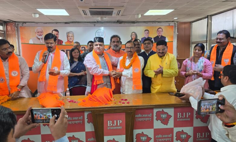 भाजपा प्रदेश अध्यक्ष महेंद्र भट्ट, प्रदेश महामंत्री तरुण बंसल, कुंदन परिहार के साथ प्रदेश उपाध्यक्ष स्वामी यतीश्वरानंद ने फूल मालाएं पहनाकर स्वागत किया। प्रदेश अध्यक्ष महेंद्र भट्ट ने सभी का भाजपा में स्वागत करते हुए कहा कि प्रधानमंत्री नरेंद्र मोदी और प्रदेश में मुख्यमंत्री पुष्कर सिंह धामी की नीतियों से खुश होकर आज विरोधियों के पास अपना वजूद बचाने के लिए कुछ नहीं छोड़ा है।