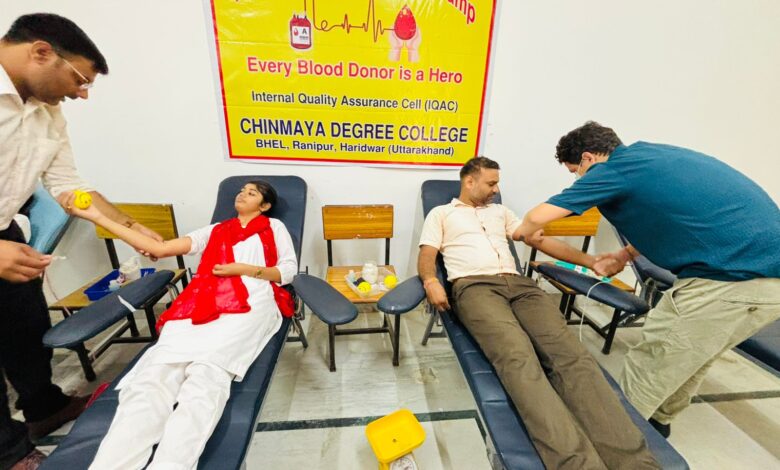 चिन्मय महाविद्यालय में रोटरी क्लब हरिद्वार के सौजन्य से किया गया रक्तदान शिविर का आयोजन