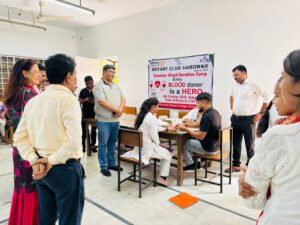 हरिद्वार। रोटरी क्लब जो कि समय समय पर जनहित को लेकर कई कार्यक्रमों का आयोजन करते आ रहे है आज इसी कड़ी में चिन्मय डिग्री कॉलेज में रोटरी क्लब हरिद्वार के सौजन्य से ब्लड डोनेट कैंप का आयोजन किया गया।
