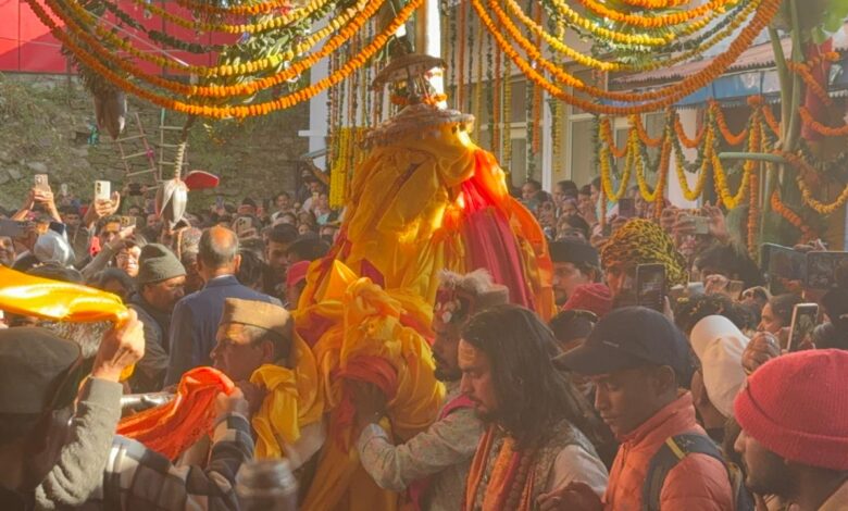 द्वितीय केदार श्री मदमहेश्वर जी की उत्सव डोली के शीतकालीन गद्दीस्थल श्री ओंकारेश्वर मंदिर पहुंचने पर भब्य स्वागत