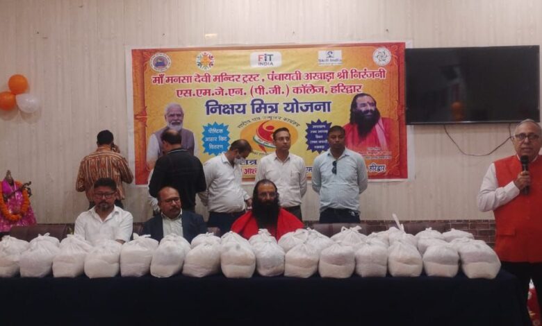 हरिद्वार: एस.एम.जे.एन. पी.जी. कॉलेज के प्रांगण में आज प्रधानमंत्री टी.बी. मुक्त भारत अभियान–3.0 के तहत आयोजित कार्यक्रम में निक्षय मित्र योजना के तहत 200 पोषण किट क्षय (टी.बी.) रोगियों को वितरित किए गए। कार्यक्रम की अध्यक्षता अखिल भारतीय अखाड़ा परिषद एवं मां मनसा देवी मंदिर ट्रस्ट के अध्यक्ष श्रीमहंत डॉ. रविन्द्र पुरी महाराज ने की। कार्यक्रम में कॉलेज प्राचार्य प्रो. सुनील कुमार बत्रा, मुख्य चिकित्सा अधिकारी डॉ. आर.के. सिंह व स्वास्थ्य विभाग की टीम मौजूद रही।