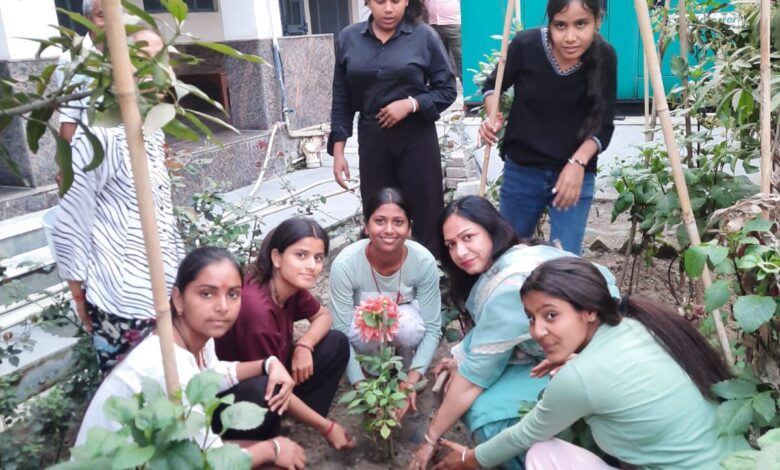 शारीरिक सत्र के उपरांत छात्राओं एवं शिक्षिकाओं ने परिसर में डहेलिया, नीम और आम के पौधे रोपित किए।