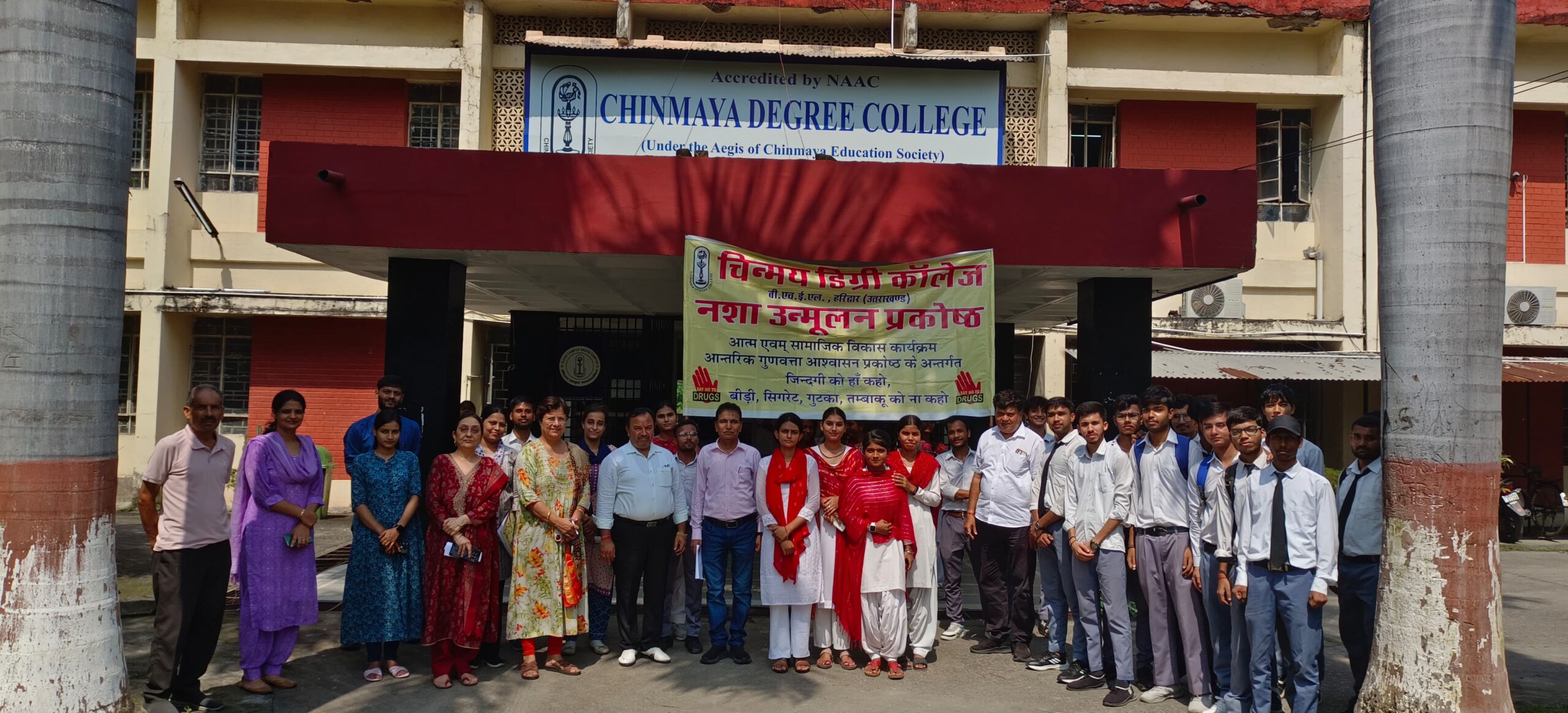 नशा मुक्त भारत अभियान के तहत चिन्मय डिग्री कॉलेज के छात्र छात्राओं ने निकाली जन जागरूकता रैली