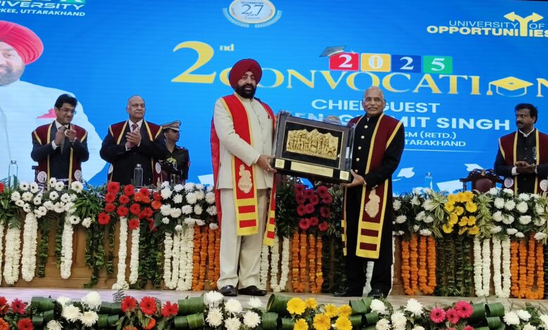 रुड़की।कोर यूनिवर्सिटी में आज द्वितीय दीक्षांत समारोह बड़े हर्षोल्लास,गरिमामई और उत्साह के साथ आयोजित किया गया।ये अवसर विश्वविद्यालय परिवार,विद्यार्थियों और अभिभावकों के लिए अत्यंत गौरवपूर्ण और भावनात्मक रहा।समारोह में उत्तराखंड के राज्यपाल लेफ्टिनेंट गुरमीत सिंह मुख्य अतिथि के रूप में उपस्थित रहे।उन्होंने अपने प्रेरणादायी संबोधन से विद्यार्थियों में नई ऊर्जा का संचार किया।राज्यपाल ने उपाधि प्राप्त करने वाले सभी छात्र-छात्राओं को बधाई देते हुए कहा कि शिक्षा केवल डिग्री प्राप्त करने का माध्यम नहीं,बल्कि राष्ट्र निर्माण और समाज सेवा की आधारशिला है।हमें विकसित भारत बनने से कोई रोक नहीं सकता।आज का युवा जाग गया है अब भारत आत्म निर्भर की तरफ तेजी से बढ़ रहा है।
