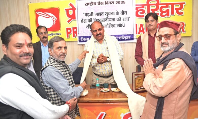 राष्ट्रीय प्रेस दिवस के अवसर पर प्रेस क्लब सभागार }7 बढ़ती गलत सूचना के बीच प्रेस की विश्वसनीयता की रक्षा करना विषय पर गोष्ठी का आयोजन किया गया।जिसमें मुख्य अतिथि मुख्य विकास अधिकारी ललित नारायण मिश्रा एवं विशिष्ट अतिथि अपर जिलाधिकारी पीआर चौहान कार्यक्रम ने शामिल हुए।