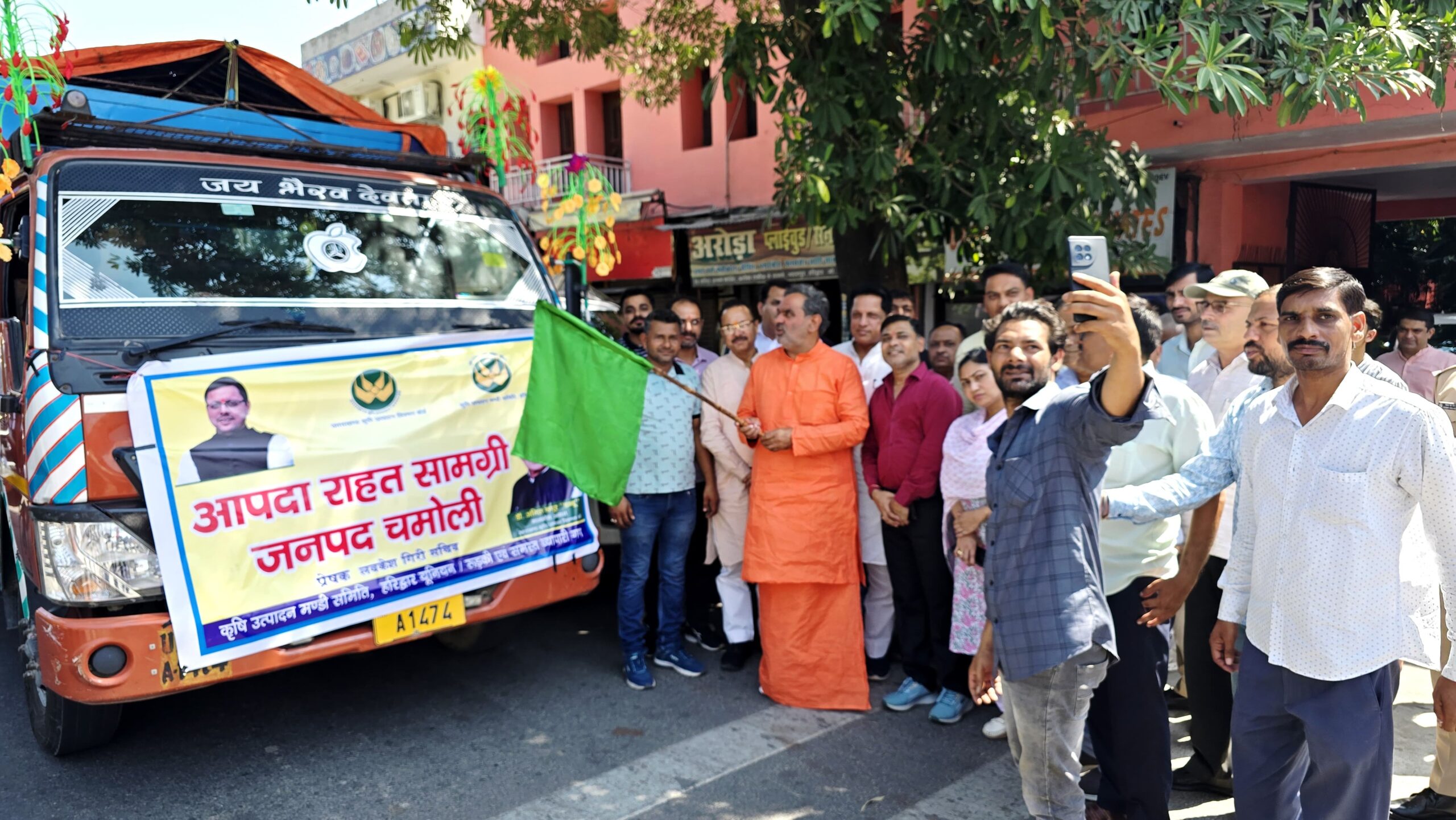 मंडी समिति और व्यापारियों के सहयोग से चमोली जिले के लिए प्रभावितों को भेजी दो गाड़ी भरकर राहत सामग्री