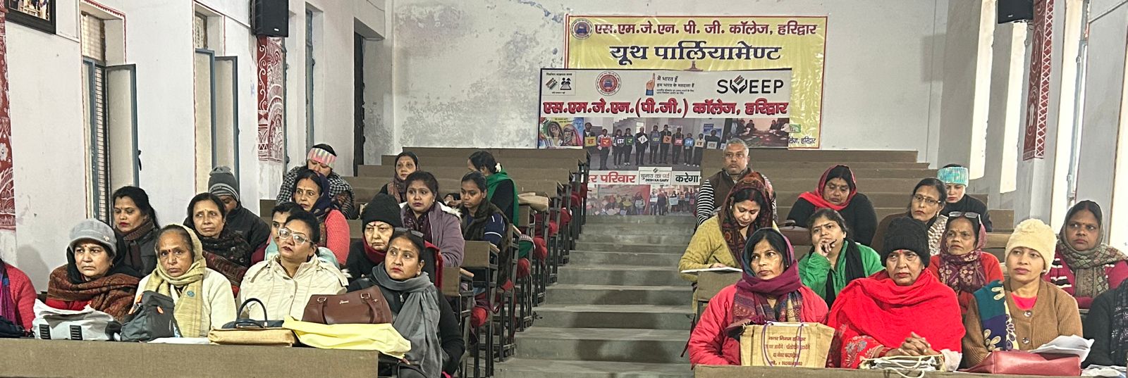 हरिद्वार 2 जनवरी 2026 । एस. एम. जे. एन. पी. जी. कॉलेज हरिद्वार में प्री एसआईआर की समीक्षा बैठक के उपरान्त बी एल ओ तथा पर्यवेक्षकों को आ रही समस्याओं के समाधान हेतु ट्रेनिंग का आयोजन किया गया। गौरतलब हैं कि उत्तराखंड राज्य में प्री एसआईआर अपने अंतिम दौर में हैं और तेजी के साथ चल रही इस प्रक्रिया में निर्वाचन आयोग पूरी तरह मुस्तैद नज़र आ रहा हैं ।