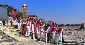 एस एस डी पाठ्यक्रम के तहत चिन्मय महाविद्यालय के छात्र छात्राओं ने किया गंगा सफाई अभियान