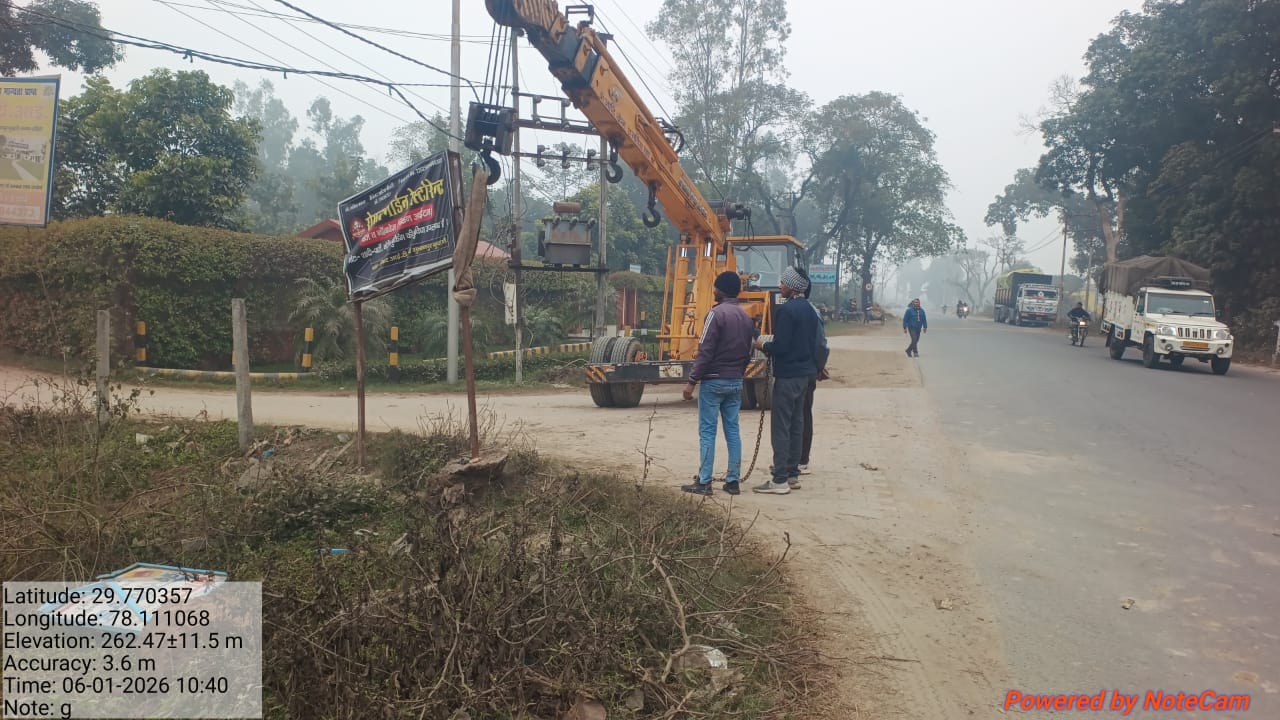 अधिशासी अभियंता राष्ट्रीय राजमार्ग सुरेश तोमर ने अवगत कराया है कि जिलाधिकारी के निर्देशों के अनुपालन में राष्ट्रीय राजमार्ग संख्या 334 ए पर सड़क किनारे सिंहद्वार से लक्सर एवं पुरकाजी आदि क्षेत्रों से अवैध रूप एवं बिना अनुमति के लगाए गए बड़े यूनीपोल एवं होर्डिंग को हटाया जा रहा है,इसके साथ ही सड़क किनारे लगाए फड़, ठेलियों एवं खोखे को भी हटाया जा रहा है,जिससे कि राष्ट्रीय राजमार्ग आवागमन हेतु बाधित न हो सके।