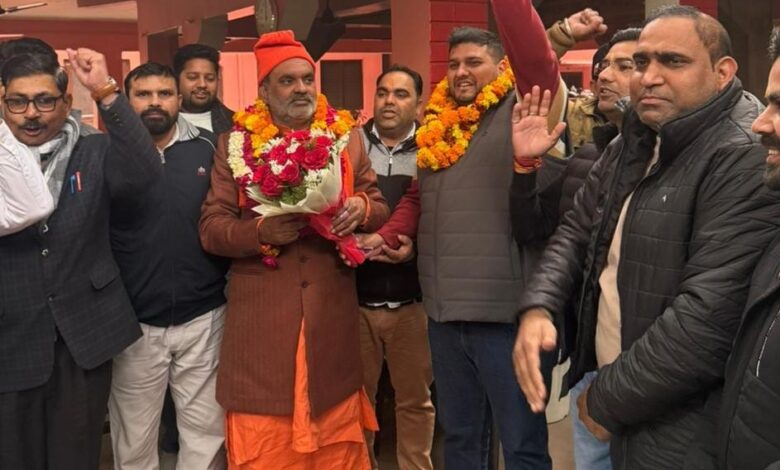 पूर्व कैबिनेट मंत्री स्वामी यतीश्वरानंद से लिया आशीर्वाद, आतिशबाजी एवं मिष्ठान वितरण कर दी बधाई