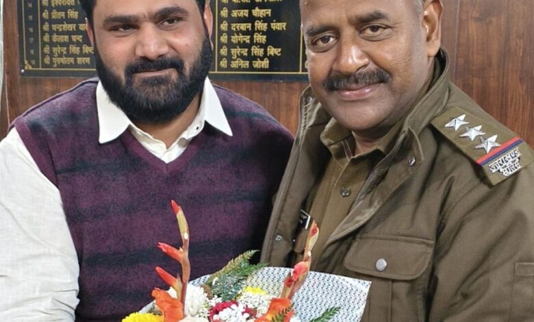 पदभार ग्रहण करने पर युवा समाजसेवी ने नए कोतवाली प्रभारी निरीक्षक का किया स्वागत